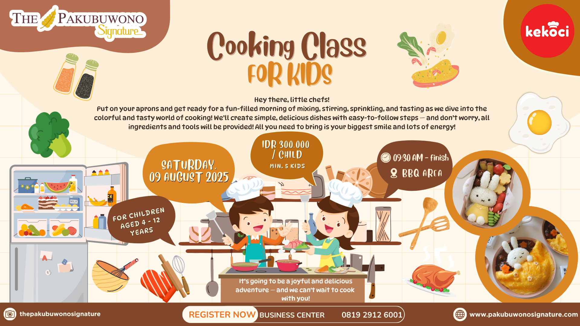 On Saturday, August 9th, 2025, the BBQ Area of The Pakubuwono Signature turned into a mini kitchen full of laughter during our Kids Cooking Class in collaboration with Kekoci.